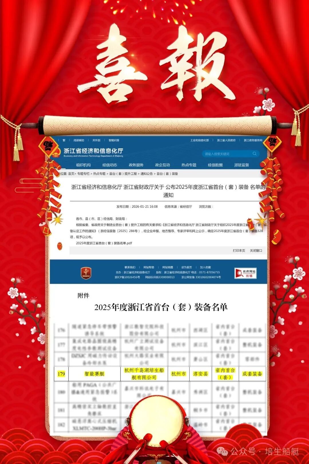 近日,浙江省经信厅与财政厅公布了2025年度浙江省首台(套)装备认定结果,培生船艇自主研发的智能赛艇荣获“省内首台(套)”认定。 素有技术创新“皇冠上的明珠”之称的“首台(套)”装备,是指实现重大技术突破并拥有自主知识产权的装备产品。它不仅是企业竞争力的核心标志,更是推进制造业高质量发展的重要引擎。 培生船艇是国家高新技术企业,自1995年建立以来,矢志不移高性能竞技船艇的研发与生产。相继被评为国家体育产业示范单位、浙江省“隐形冠军”企业、浙江省“专精特新”中小企业、浙江省知识产权示范企业、浙江省科技型中小企业、杭州市体育用品制造业优秀品牌企业等。其中八人单桨竞技赛艇、新型国际竞技龙舟、四人竞技皮艇和新型双人海岸赛艇、一体成型碳纤维赛艇桨架、智能赛艇、多功能青少年皮艇还分别被评为2023年和2025年浙江省工业新产品,技术水平国内领先。在2025年第十五届全运会四大水上运动项目大赛中,其静水赛艇和海岸赛艇、静水皮划艇与激流回旋皮划艇,赢得参赛选手的一致好评。 这次智能赛艇荣获省内“首台(套)”认定,再一次充分体现了培生船艇长期专注水上运动装备技术突破与产品创新的不懈追求。未来,培生船艇将进一步发挥国家体育产业示范单位的作用,瞄准不断提升水上运动训练质效和竞技水平目标,着力绿色、低碳、智能船艇研发再攀新台阶,为产业高质量发展注入源源的新动能。
